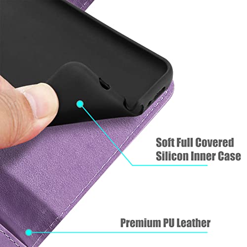 Oududianzi-Cover per Samsung Galaxy A13 4G [2X Pellicola Vetro Temperato] Flip Portafoglio Custodia Pelle PU Silicone TPU Protettiva Antiurto[Slot Schede] [Chiusura Magnetica] [Funzione Stand]-Viola