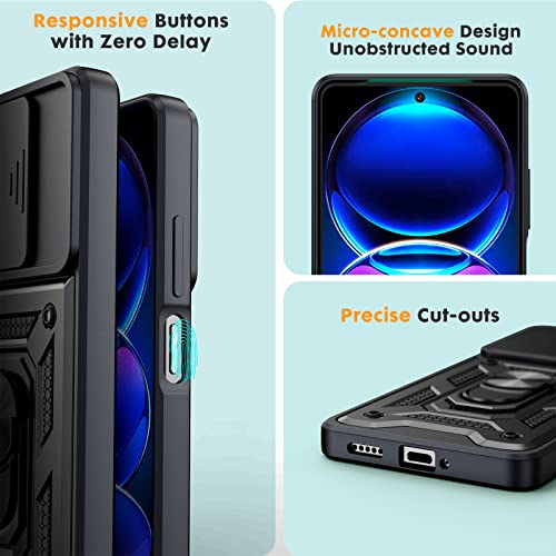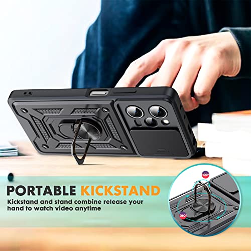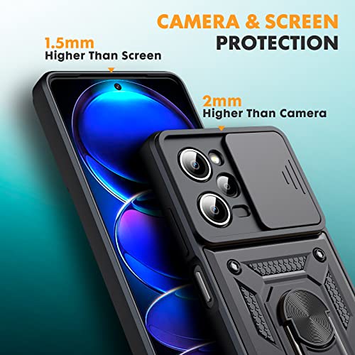 Oududianzi Custodia Compatibile con Xiaomi Redmi Note 12 Pro 5G/POCO X5 Pro 5G con 2 Vetro Temperato, Copriobiettivo Scorrevole, Antiurto e Antigraffio,Supporto per Telefono Girevole a 360° Gradi-Nero