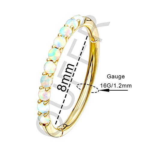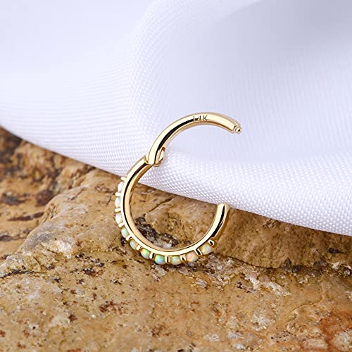 OUFER 14ct Oro Solido 16G Helix Piercing Hoops Opale Bianco Daith Trago Tragus Rook Conch Cartilagine Orecchino Cartilage Earrings Naso Ring Septum Clicker Gioielli Donna 8mm