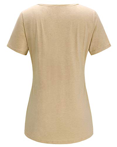OUGES T-Shirt Donna Estate Top Scollo a V Manica Corta Camicetta Casual Bottone Frontale Tunica Elegante Top(Albicocca-585,S)