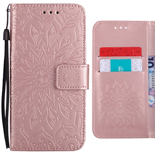 Ougger Cover per Huawei Honor 6C (Enjoy 6s, Nova Smart) Custodia, Fiori Che Sbocciano Portafoglio PU Pelle Magnetico Morbido Silicone Flip Cover Protettivo Gomma Custodie con Porta Schede (Rose Oro)