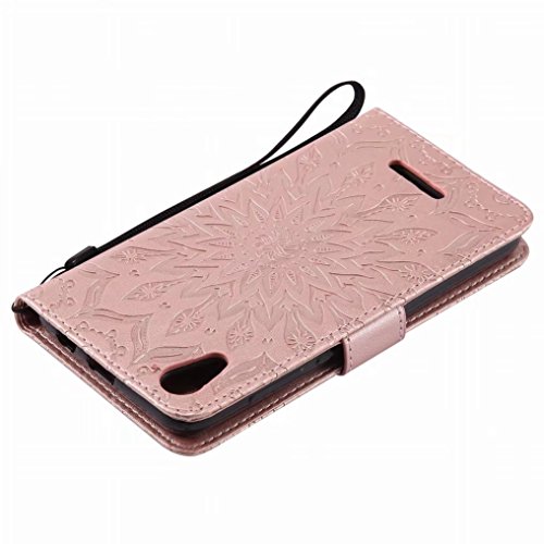 Ougger Cover Wiko Lenny 4 Flip Custodia, Fiori Sbocciano Portafoglio PU Pelle Magnetico Morbido Silicone Flip Cover Bumper Protettivo Gomma Borsa Custodie Wiko Lenny 4 con Porta Schede (Rose Oro)