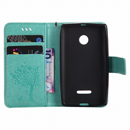 Ougger Cover Microsoft Lumia 435 Custodia, Alberi Gatto Printing Portafoglio PU Pelle Magnetico Morbido Silicone Flip Cover Bumper Protettivo Gomma Shell Borsa Custodie con Porta Schede (Verde)