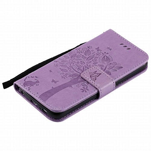 Ougger Cover per Samsung Galaxy S6 G920 Custodia, Alberi Gatto Portafoglio PU Pelle Magnetico Morbido Silicone Flip Cover Protettivo Gomma Borsa Custodie con Porta Schede (Viola Chiaro)