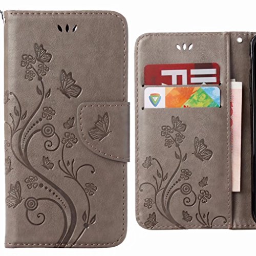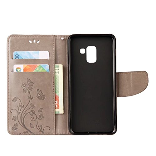 Ougger Cover per Samsung Galaxy A8+ (2018) A730 Custodia, Portafoglio PU Pelle Magnetico Morbido Silicone Flip Cover Protettivo Custodia Galaxy A8+ 2018 con Slot per Schede, Vene di Fiore (Grigio)