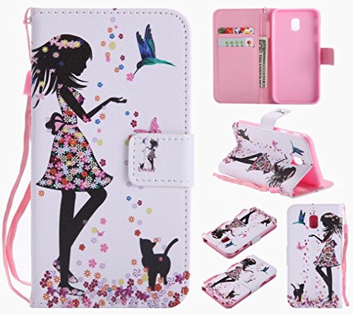 Ougger Cover per Samsung Galaxy J3 (2017) / J330F Custodia, Ragazza Stile Portafoglio Custodie PU Pelle Magnetico Morbido Silicone Flip Cover Bumper Protettivo Gomma Borsa Custodie con Porta Schede