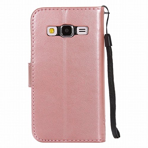 Ougger Cover per Samsung Galaxy Core Prime / G360 Custodia, Alberi Gatto Portafoglio PU Pelle Magnetico Morbido Silicone Flip Cover Protettivo Gomma Borsa Custodie con Porta Schede (Oro Rosa)