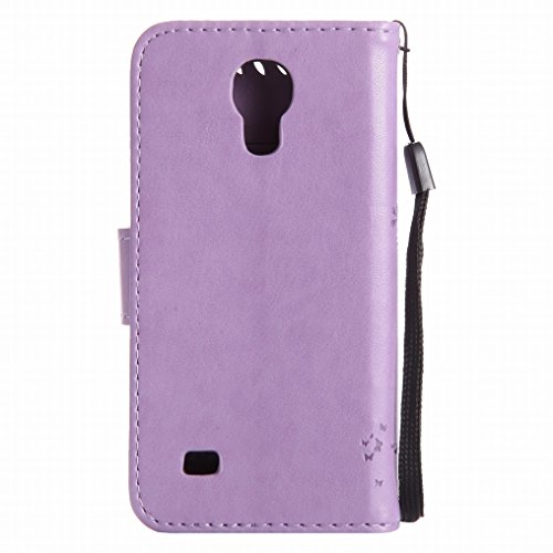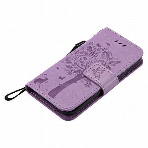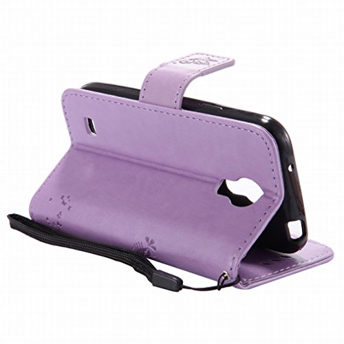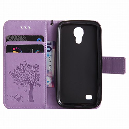 Ougger Cover per Samsung I9190 Galaxy S4 Mini Custodia, Alberi Gatto Portafoglio PU Pelle Magnetico Morbido Silicone Flip Cover Protettivo Gomma Borsa Custodie con Porta Schede (Viola Chiaro)