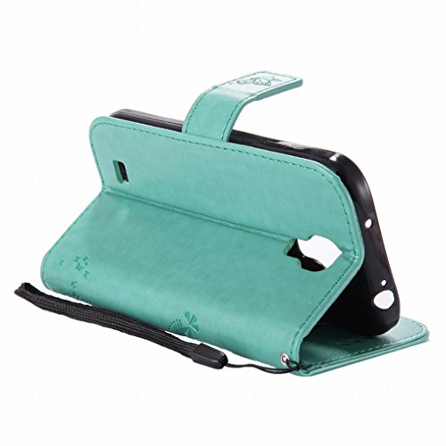 Ougger Cover per Samsung i9500 Galaxy S4 Custodia, Alberi Gatto Portafoglio PU Pelle Magnetico Morbido Silicone Flip Cover Protettivo Gomma Custodie con Porta Schede (Verde)