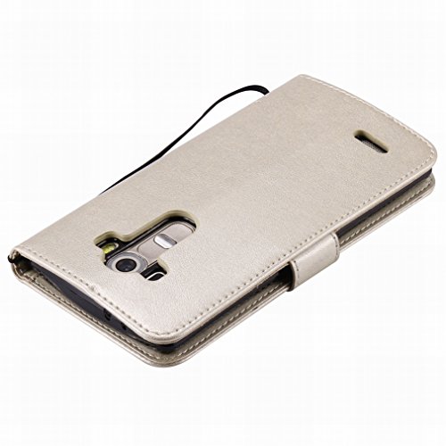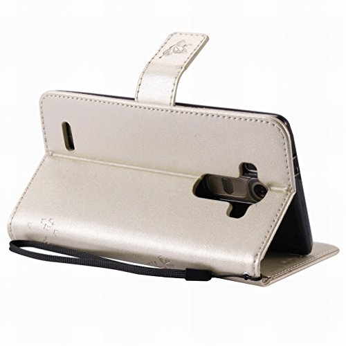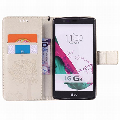 Ougger Custodia per LG G4 / H815 / H812 / H810 / H811 / LS991 Cover, Alberi Gatto Portafoglio PU Pelle Magnetico Stand Morbido Silicone Flip Protettivo Gomma Borsa Custodie con Slot per Schede (Oroen)