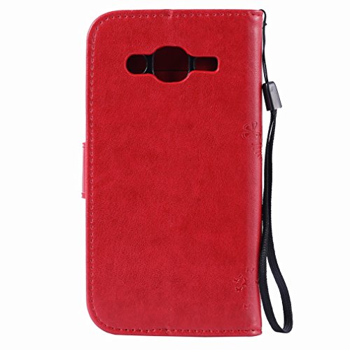Ougger Custodia per Samsung Galaxy J2 J200 Cover, Alberi Gatto Portafoglio PU Pelle Magnetico Stand Morbido Silicone Flip Protettivo Gomma Borsa Custodie con Slot per Schede (Rosso)