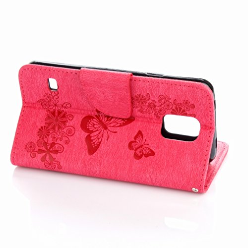 Ougger Custodia per Samsung Galaxy S5 Mini / G800F Cover, Fiore Farfalla Portafoglio PU Pelle Magnetico Morbido Silicone Flip Protettivo Borsa Custodie con Slot per Schede (Rosa)