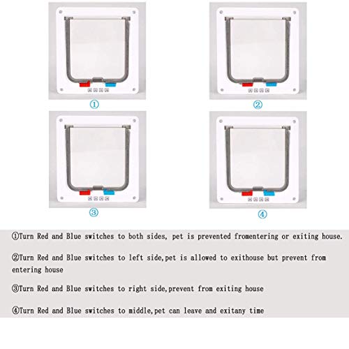 Sicuro e ben progettato - la valvola trasparente permette all'animale domestico di vedere attraverso la porta. La guarnizione antipioggia esterna è impermeabile all'acqua. La striscia a spazzola elimina il rumore durante la chiusura della porta. Il controllo intelligente della porta a 4 vie offre al gatto una maggiore libertà. Il bordo interno del telaio è lucidato per non danneggiare il gatto.