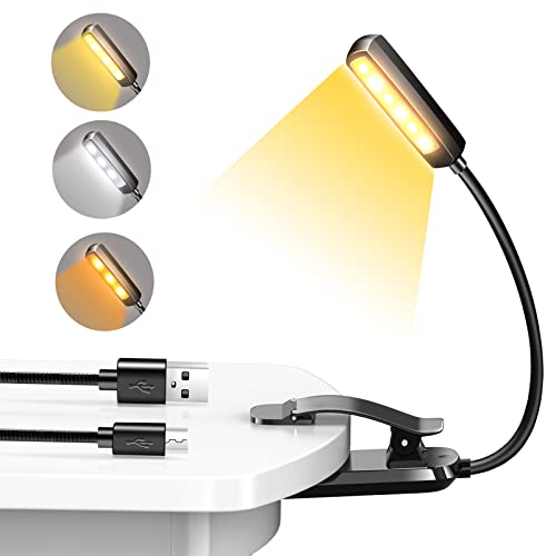 OUILA Luce per Lettura Libri a Letto Piccola USB Ricaricabile Lampada Lettura da Letto with 600mAh Pile, Lampada con Pinza, 3 Colori Luce Lettura Libro Notturna con Morsetto, Cavo USB Incluso