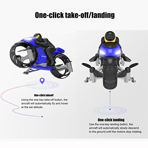 Ouitble Moto acrobatica RC , Moto acrobatica RC 2 in 1 Land Air Flying Motos Drone con Rotazione di 360 Gradi Drift Kids Toy(Blu)
