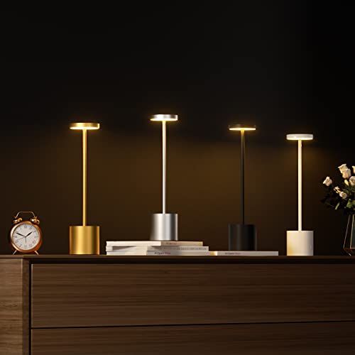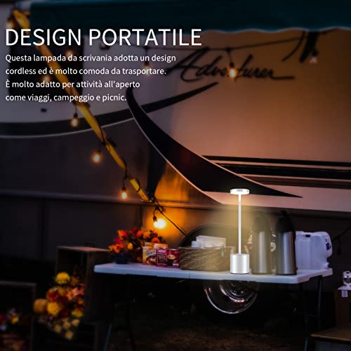 OUJIE Lampada da Tavolo Senza Fili, Batteria Ricaricabile 6000mAh, LED Esterno Ristorante Lampada da Scrivania, Lampada da Comodino in Metallo, Per Soggiorno Camera letto Ufficio Studio. (Argento)