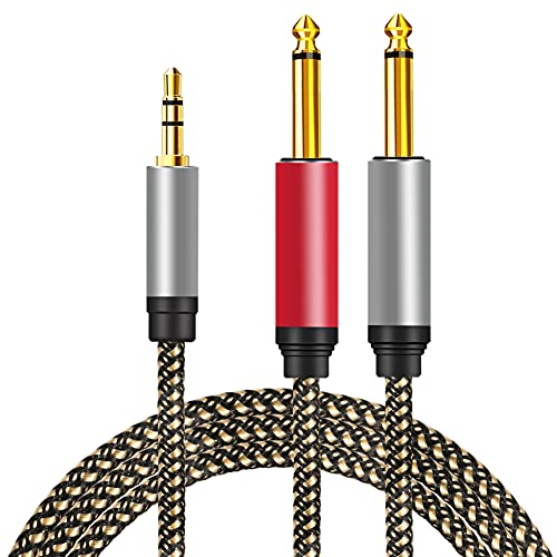 【Cavo Audio Professionale】 Jack da 3.5 mm per 2 cavi da 6.35mm TS audio mono per mixer. Collegamento della presa audio con uscita jack da 3.5 mm a un dispositivo con 2 ingressi jack da 6.35 mm. La qualità professionale garantisce un suono di alta fedeltà, si tratta di un ottima scelta per gli appassionati e gli audiofili di musica.
