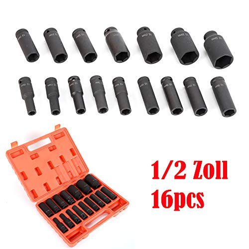 Set di 16 dadi per avvitatore a percussione, inserti per chiave a bussola da 1/2".