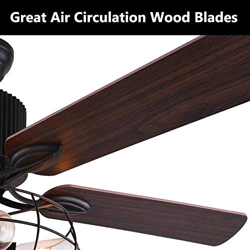 OUKANING Ventilatore da soffitto con illuminazione e telecomando Ventilatore industriale da 52'' Lampada da soffitto semi-incasso Lampadario vintage retrò Lampadario antico a 5 luci Moderno