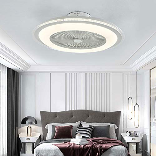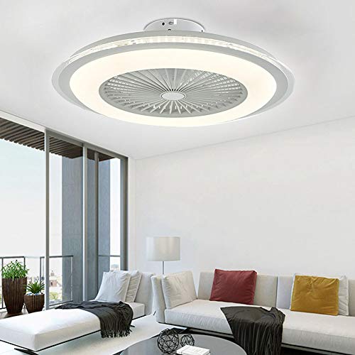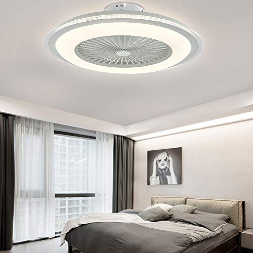 OUKANING - Ventilatore da soffitto con telecomando e luce da soffitto a LED, dimmerabile, ventilatore interno alla lampada, ultra silenzioso, per soggiorno (bianco)