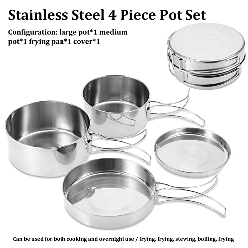 OUKENS Pentole da Campeggio, 4 Pezzi Set di pentole Portatili in Acciaio Inossidabile da Campeggio Picnic all'aperto Pentola da tavola