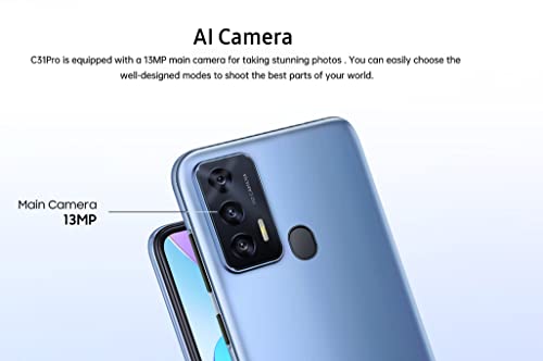 ★【Fotocamera AI:】 il C31 PRO è dotato di una fotocamera posteriore principale da 13 MP per scattare foto stupende. Puoi facilmente scegliere tra le varie modalità per scattare immagini straordinarie e le puoi condividere con grande confidenza con amici e familiari grazie alla fotocamera frontale per selfie da 5 MP.
