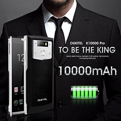 OUKITEL K10000 Pro - 4G Telefoni Smartphone Libero Grande 10000mAh Batteria, 5MP + 13MP Telecamera, 5,5 pollici Mostra Android 7.0, MTK6750T Octa Core 1.5GHz 3GB RAM 32GB ROM, Impronta Digitali GPS Dual SIM Flash Charger OTG