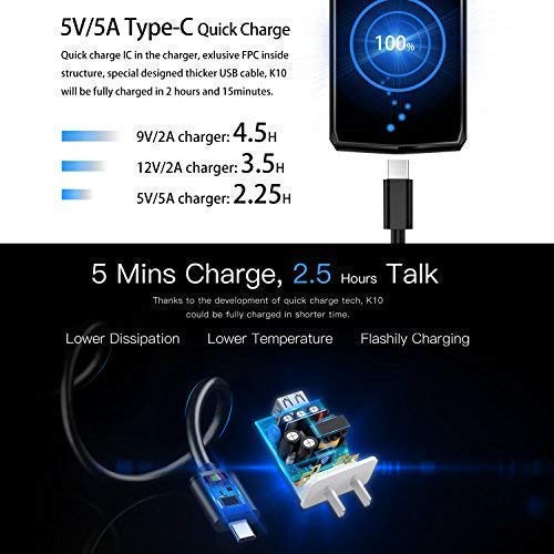 OUKITEL K10 Dual SIM Smartphone senza contratto con batteria da 11000 mAh, Android Cellulare 6 pollici 18:9 Display 6 GB RAM 64 GB Memoria interna Dual Camera 21 MP + 8 MP, 5 V/5 A Quick Charge, NFC, Face ID Unlock