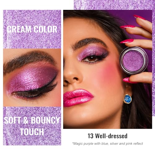 Oulac Ombretto Occhi Brillantini Viola | Super Pigmentato e Impermeabile, Lunga Durata 12 Ore, Finitura Lucida Metallica, Formula Setosa e Idratante, Vegan |12g (13) Well-dressed