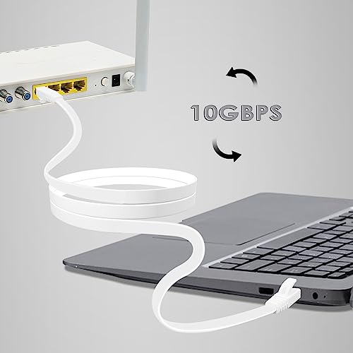 Oulesvte 10m Cavo Ethernet, Cat 7 Cavi Ethernet con Placcata RJ45, Piatto Cavo Internet, 10Gbps Gigabits Cavo Rete, Compatibile con Cat6/Cat5, Cavo Lan per Router, Computer, Switch, Modem(Bianco)