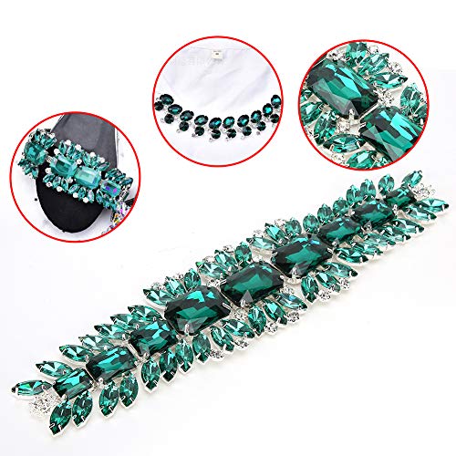 Oumefar Cristallo Strass Catena Trim Cristalli Cucito Applique Patch Decorazione Artigianale per Cucire Abiti da Sposa Fai da Te Borse Scarpe(Verde Smeraldo)
