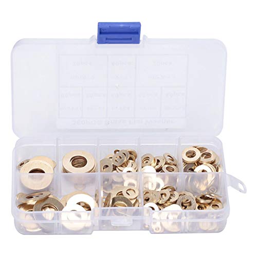 Oumefar 360 pz Rondella in Ottone M2 M2.5 M3 M4 M5 M6 M8 M10 Kit Assortimento Anello Guarnizione Piatta in Metallo