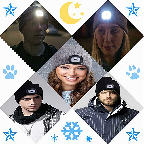 Un formato misura tutti, Cappello lavorato a maglia unisex con 8 LED incorporato e rimovibile LED ricaricabile, può illuminare la distanza fino a 30 metri di distanza. Perfezionare regalo per le tue famiglie e amici.