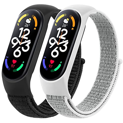 Oumida 2-Pezzi Nylon Cinturino per Xiaomi Mi Band 7,Regolabile Velcro Nylon Cinturini Sportivo per Mi Band 7 Uomo Donna,Nero+Grigio
