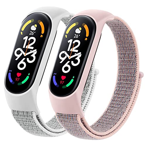 Oumida 2-Pezzi Nylon Cinturino per Xiaomi Mi Band 7,Regolabile Velcro Nylon Cinturini Sportivo per Mi Band 7 Uomo Donna,Grigio+Rosa