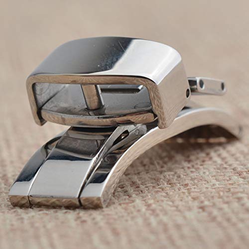 Oumosi - Cinturino in acciaio INOX con chiusura a molla, con chiusura a doppia spinta, 16 mm