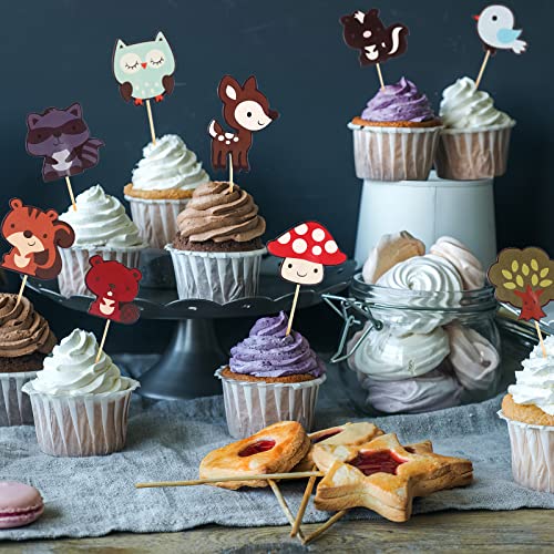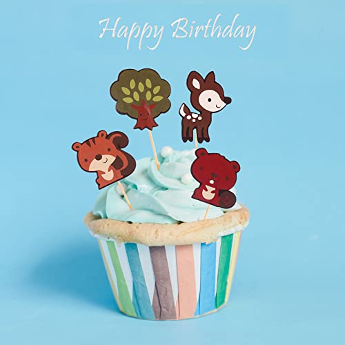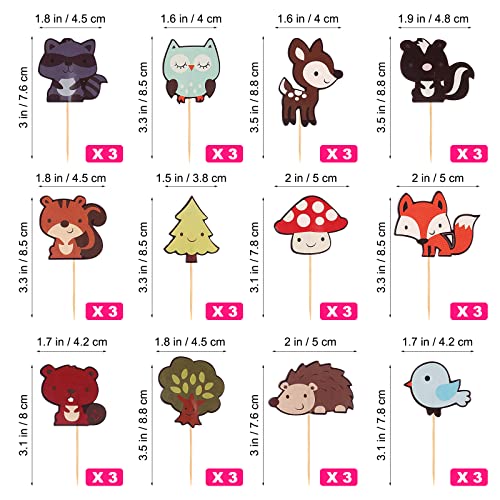 Ounona, topper decorativo per cupcake, torte o spiedini a forma di animali del bosco, 36 pezzi