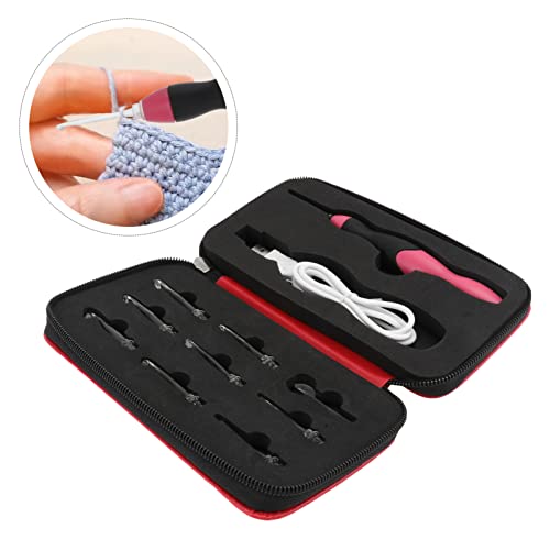 Ounona LED Uncinetti Ferri Da Maglia Regolabile Sewing Craft Tools Set per DIY tessere filato (rosso)
