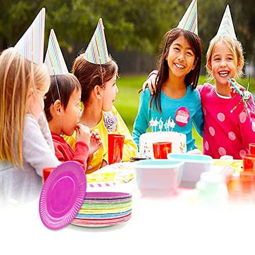OUOQI Piatti di Carta Colorati,50 Pezzi Piatti Carta,7 Pollici Piatti Carta USA E Getta Rotondi,Piatti Ecologici in Carta,Piatti da Festa per Bambini,Per Compleanno, Festa, Matrimonio
