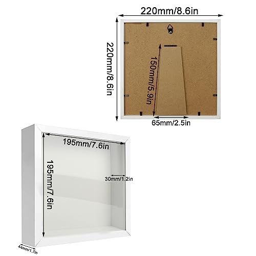 Confezione e dimensioni: riceverai 2 cornici per ombre e 2 chiodi anti-marcatura che proteggeranno le pareti dai danni. La cornice esterna del telaio della scatola misura 21,8 x 21,8 x 4,3 cm e può contenere foto fino a 8 pollici con una profondità interna di 3 cm.
