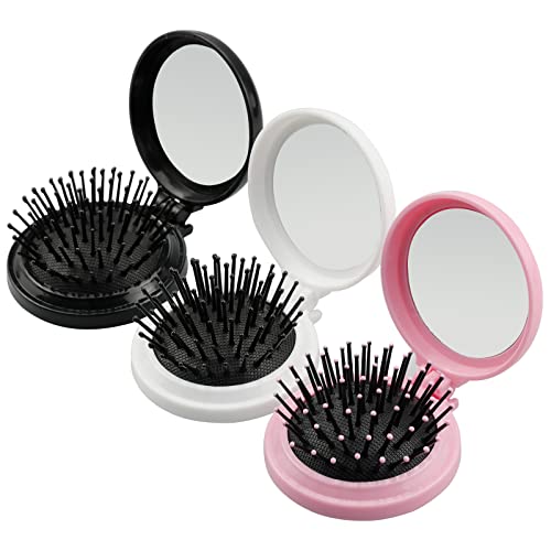 Dimensioni da viaggio e facile da trasportare: Pettine pieghevole con specchio in 3 pezzi in diversi colori, tra cui rosa, nero, bianco;