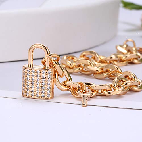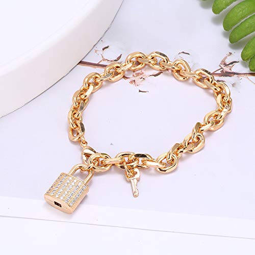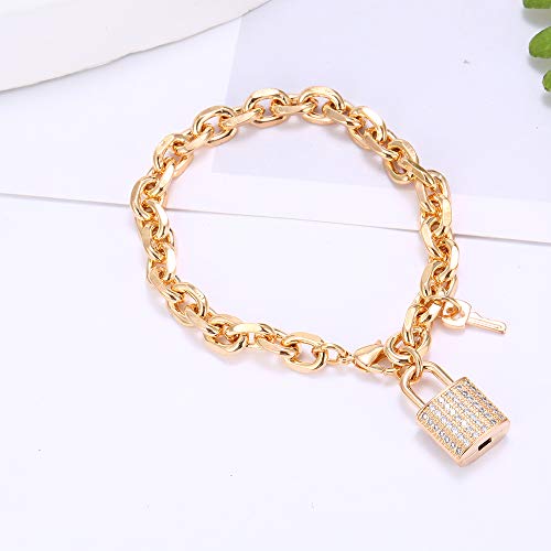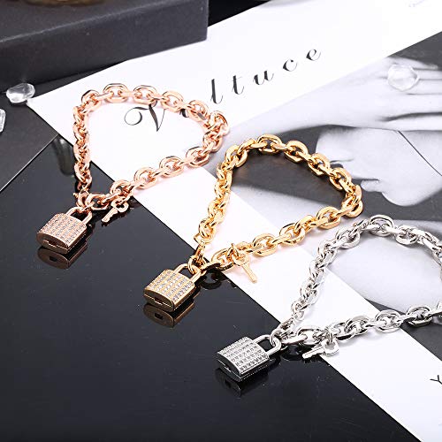 Ouran Bracciale a Maglie Lucchetto con Ciondolo Chiave per Donna, Bracciale da Polso a Catena Placcato in Oro Rosa e Argento con zirconi Confezioni Regalo per Amici, mamma (Placcato Oro)