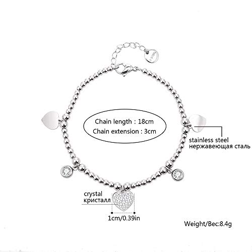 Ouran - Braccialetto da donna con ciondolo a forma di cuore, placcato oro rosa e argento, con perline in acciaio inox e Acciaio inossidabile, colore: Placcato in argento., cod. S232-BS149-SL