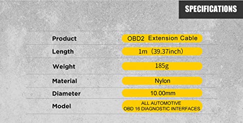 SPECIFICA: Lunghezza totale: 1 m, diametro del cavo di prolunga in nylon obd-2: 10 mm (più spesso del normale adattatore per prolunghe).