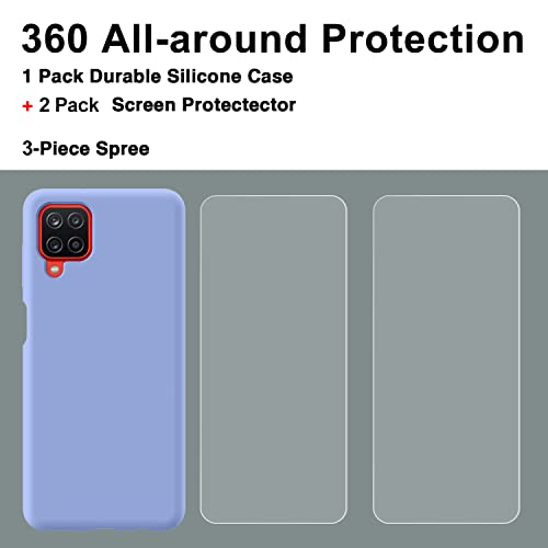 Oureidoo Cover Samsung Galaxy A12 / Samsung Galaxy M12 con 2 Pellicola Vetro Temperato, Custodia per Samsung Galaxy A12 / M12 Silicone Slim Cover Antiurto con Morbida Microfibra Fodera Case, Viola
