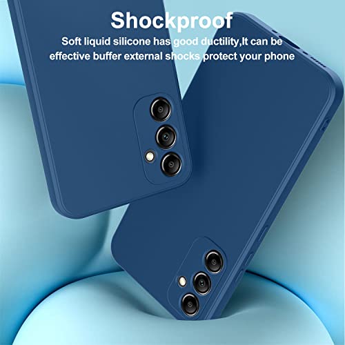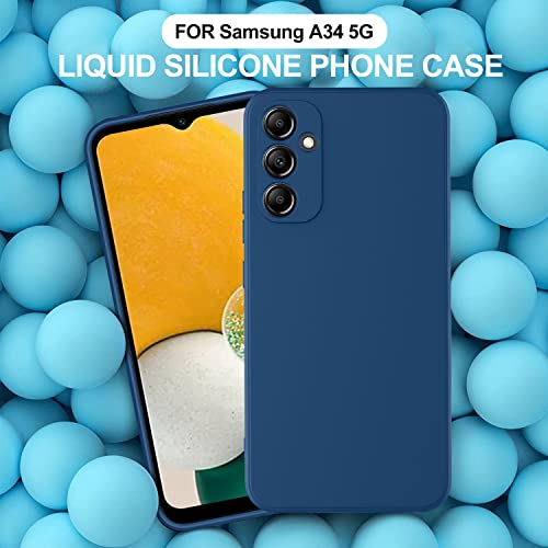 Oureidoo Cover per Samsung Galaxy A34 5G con 3 Pezzi Pellicola Vetro Temperato, Custodia in Morbida Silicone Liquido, Sottile e Antiurto con Rivestimento in Microfibra AntiGraffio, Blu