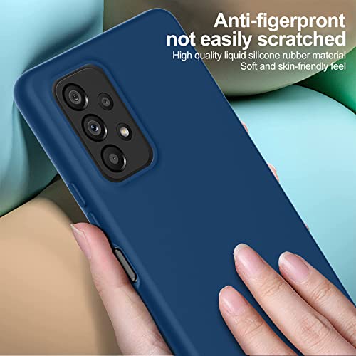 Oureidoo Cover per Samsung Galaxy A53 5G con 3 Pezzi Pellicola Vetro Temperato, Custodia in Morbida Silicone Liquido, Sottile e Antiurto con Rivestimento in Microfibra AntiGraffio, Blu