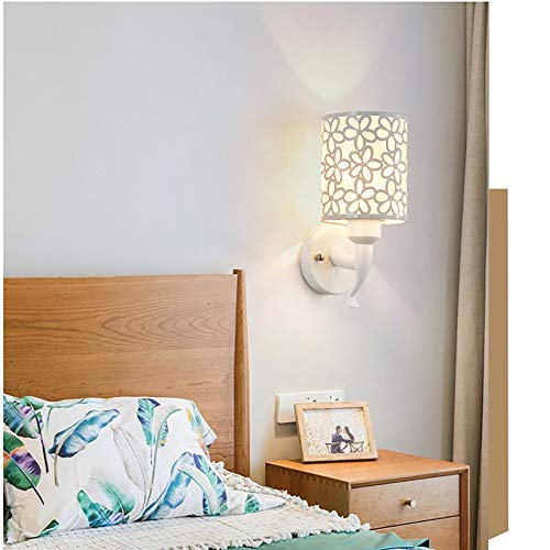 OurLeeme Applique Interno Moderno, Applique da parete Semplicit?Paralume in ferro battuto con motivi floreali in ferro per la camera da letto Soggiorno (non include lampadine)