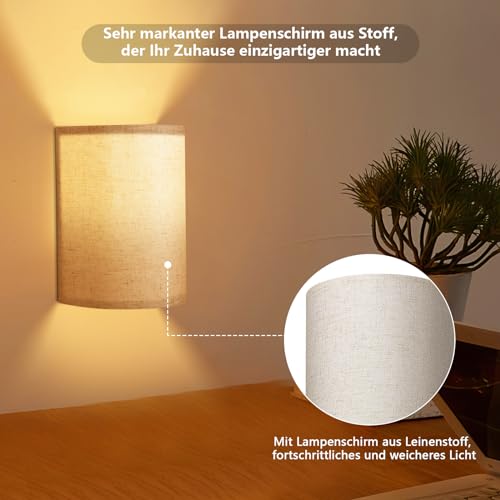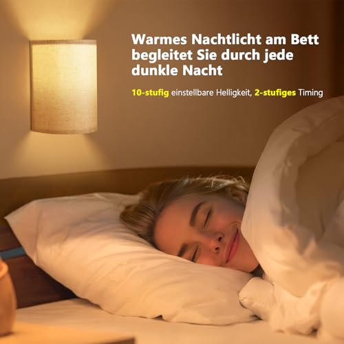 OurLeeme Lampada da parete a LED per interni, 2 pezzi, senza fili, RGB da parete, in tessuto, dimmerabile, luminosità regolabile, 2 livelli di temporizzazione lampada da comodino con lampadina
