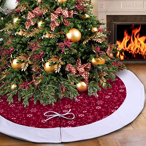 OurWarm Velluto Rosso Gonne per Alberi di Natale 122cm, Bianca Fiocco di Neve Pannello Esterno Albero di Natale Base per la Decorazione di Natale Decorazioni Natalizie